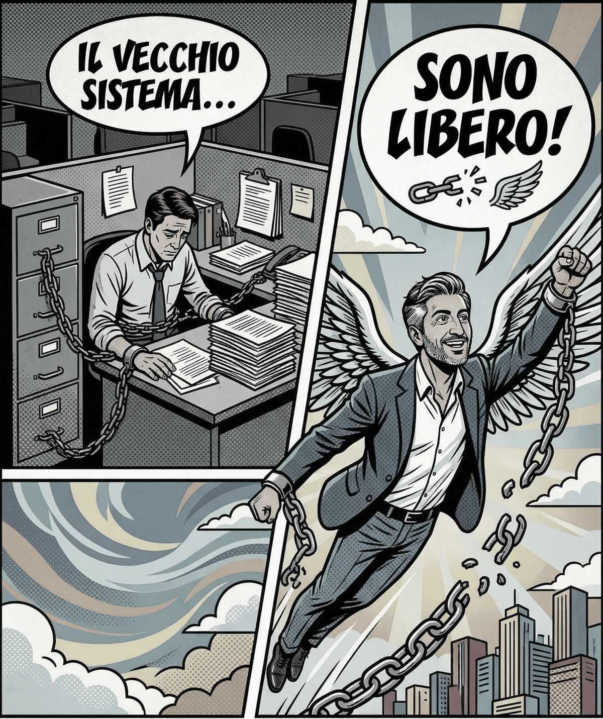 "Molti pensano che per avere successo online serva diventare un "meccanico" del web: imparare codici, combattere con le spedizioni, gestire magazzini. Sbagliato. Quello è solo un altro modo per restare imprigionato. Creiamo il tuo Freedom E-Business per renderti libero e indipendente"